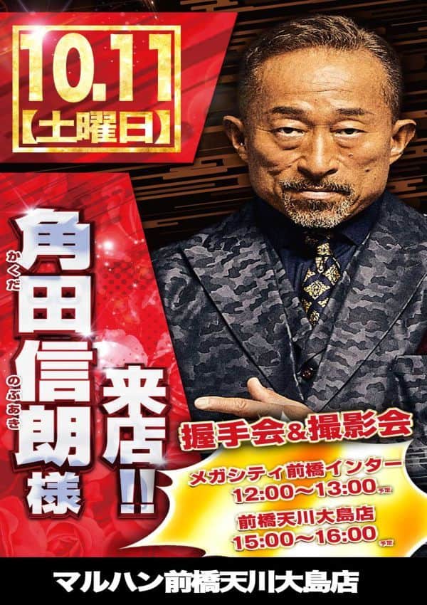 10月11日(土)角田信朗さん来店予定!ご来店お待ちしております!