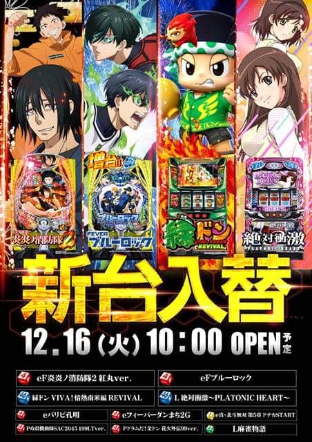 12月16日(火)新台入替(予定)