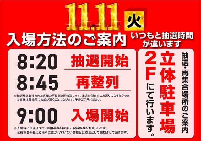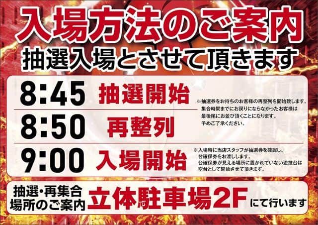 朝の入場は8:45抽選開始となります。