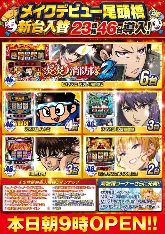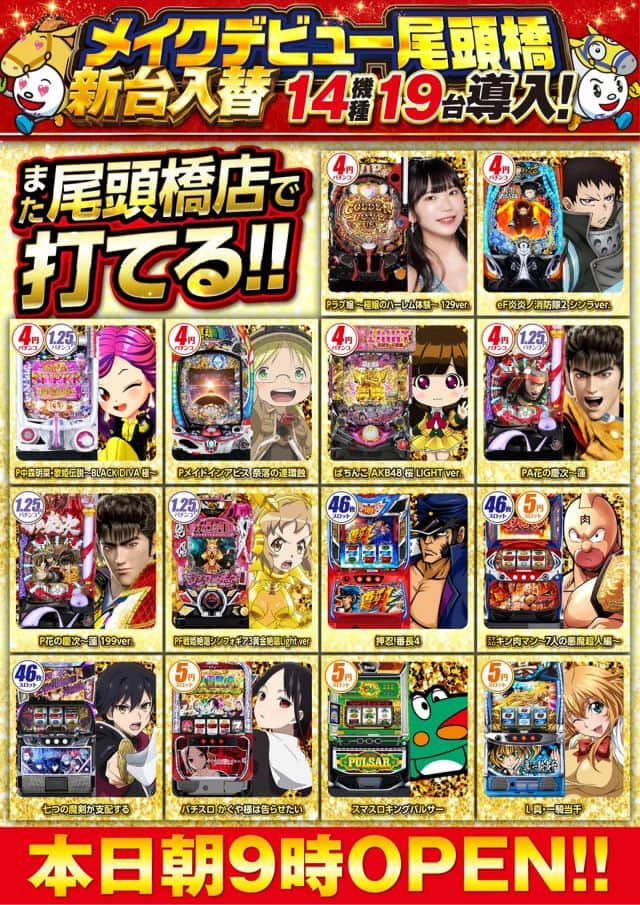 新台入替朝9時開店!!
