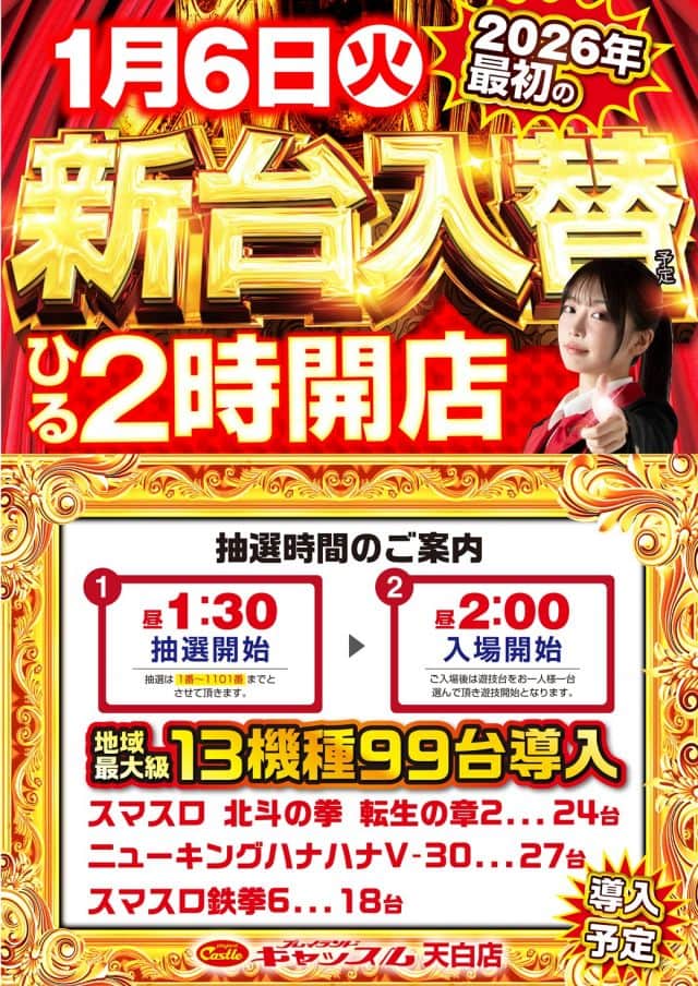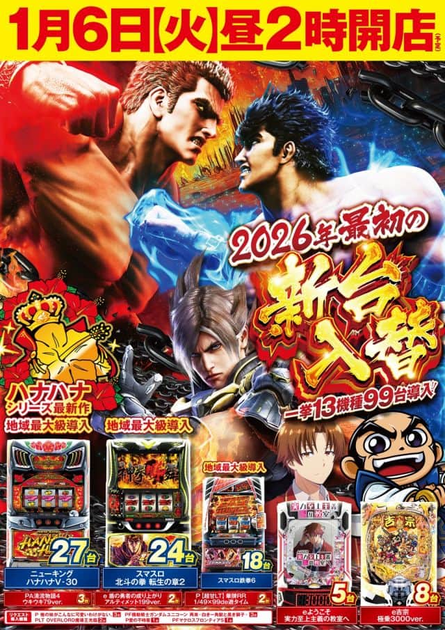 新台入替昼2時開店予定!