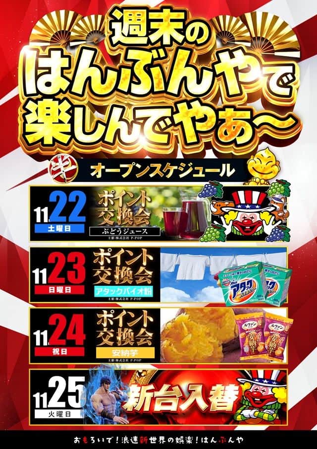 22日~25日はんぶんや営業スケジュール☆★ポイント交換会やってんでぇ!!!