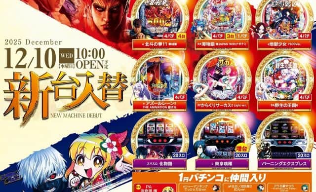 【グランパス】明日 12月11日 木曜日 新台入替AM9:00 OPEN