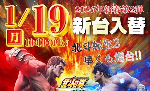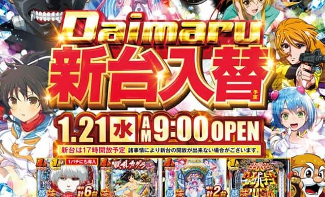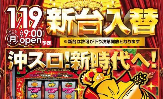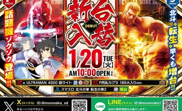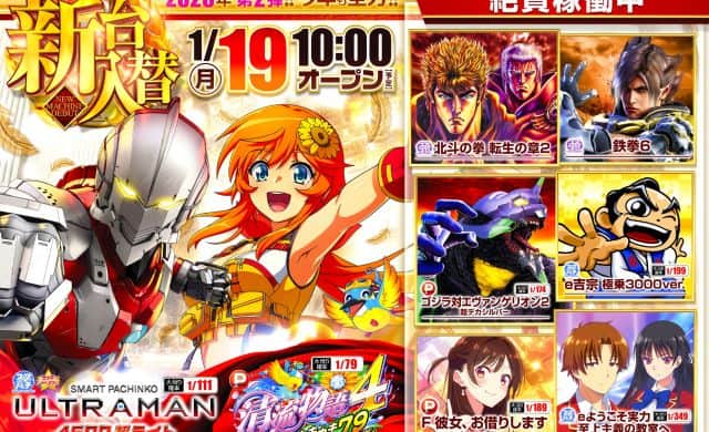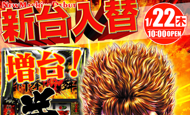 【サンシャインKYORAKU植田】1月20日(火)新台入替9時開店予定!!