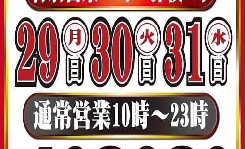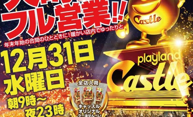 更新!【プレイランドキャッスル知多にしの台店】12月31日水曜日キャッスル全店合同朝9時開店!