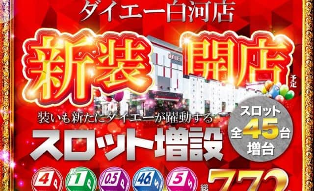 【ダイエー白河店】明日、11月20日(木)新装開店 スロット増設 45台増台!朝9時開店!!