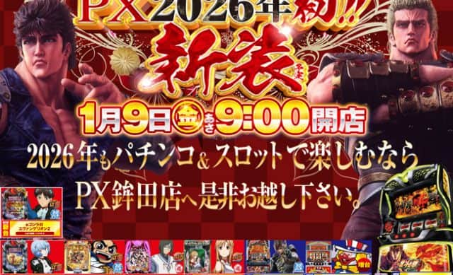 【グランパス】明日 1月8日 木曜日 新台入替 AM9:00 OPEN