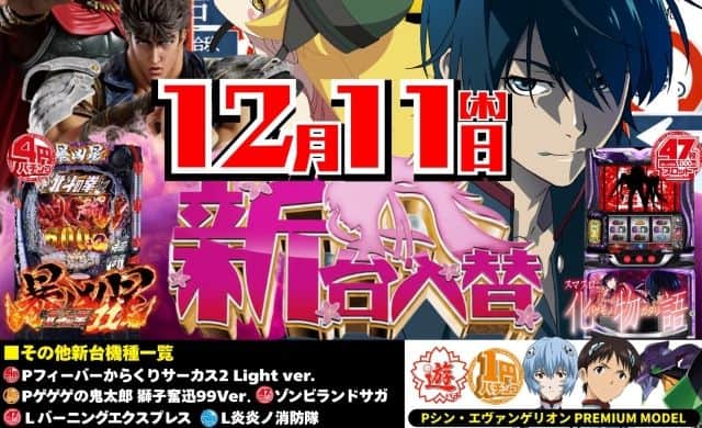 【エーワン中津店】明日12月9日(火)新台入替!朝10時オープン!