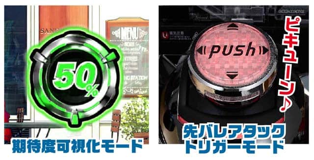 ゲーム性や信頼度が変化する多彩なモードをカスタムできる。中でもオススメは保留で期待度を表示する期待度可視化モードと、保留入賞時の先バレアタックトリガーモードだ。