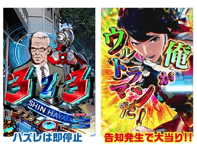 初当りは全て2Rのウルトラボーナス。ここが本機種を打つ上で最大の勝負所で、告知に成功すればRUSH突入だ。