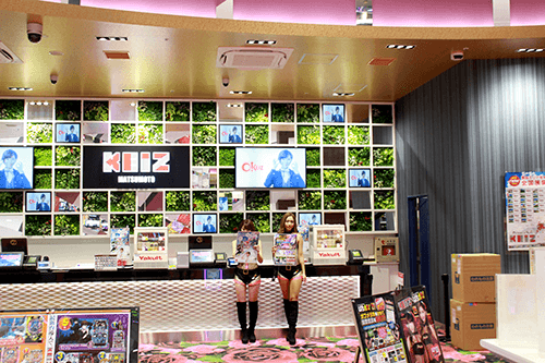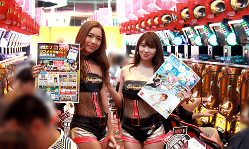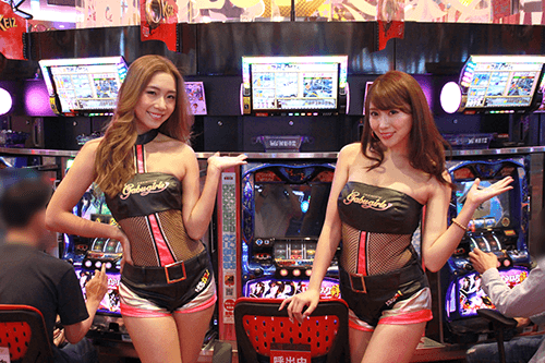 プレミアムガブガールズの2人はトークしながらぱちガブッ!クリーナーを配布中!