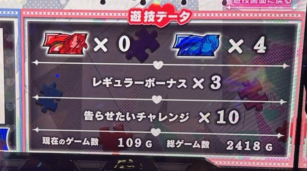 予想通り、やはりBTループが取れない偶数挙動。何とかこの台の差枚がちょいプラスになった所で実戦終了です。これが唯一のプラス台…(苦笑)。
