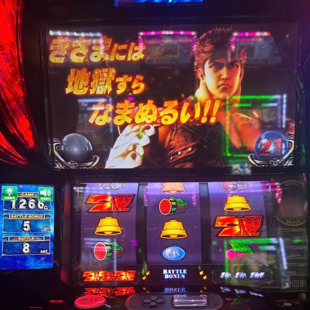 そんな事を考えながら店内を一周していると、見つけたのは北斗の600G手前のハマり台。これは行くっきゃないぞ!! オールナイトだから、こんな時間からでも打てちゃうのですよ。