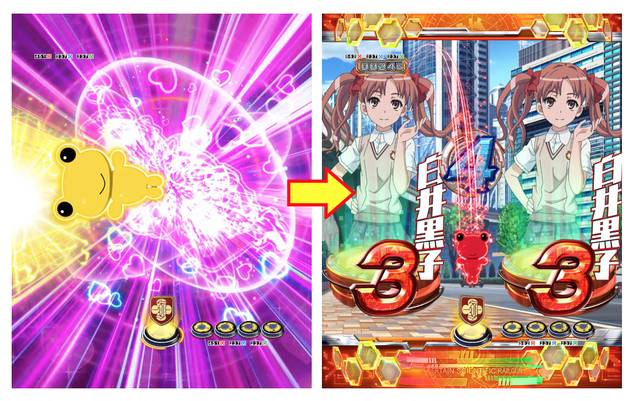 初当り後に突入する51回転の右打ちモード。規定回数以内に超電磁砲を放つことができれば「最強御坂RUSH」へ突入となる。ロゴの炎色やカウントダウンに違和感があるとチャンスアップとなり、RUSH突入期待度は約35%。