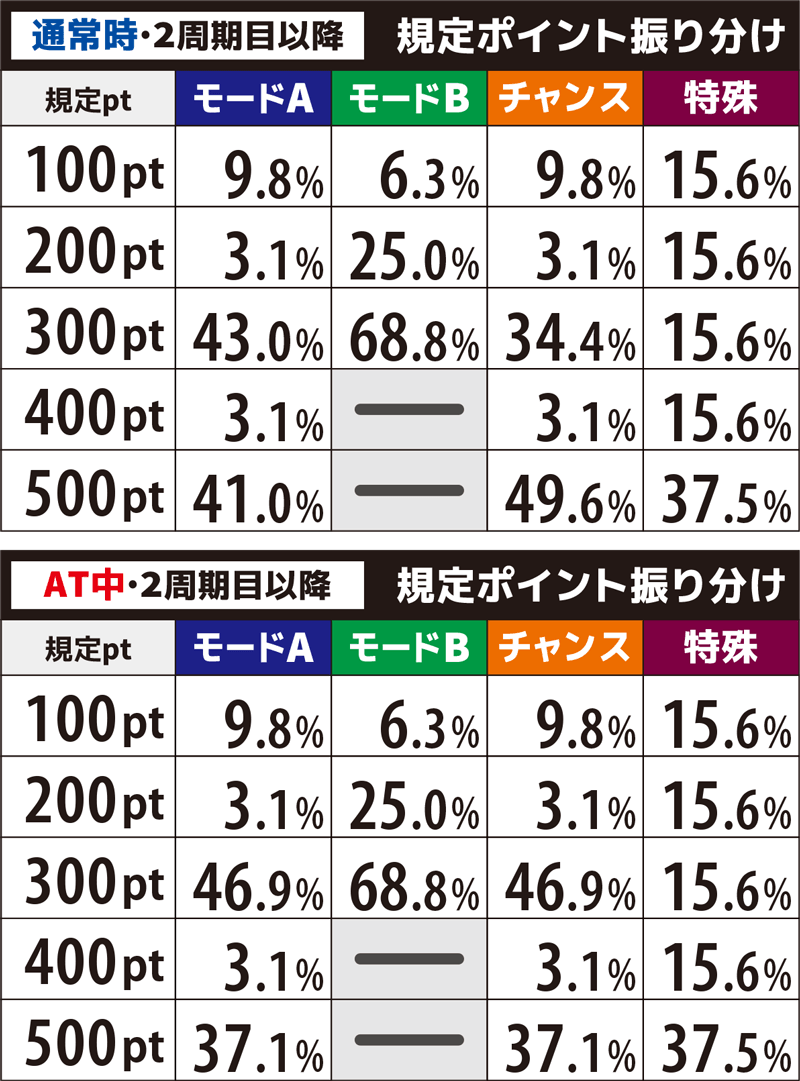 リセット台は上記の恩恵を一挙に授かれるため、朝イチ100or200pt到達時にATが当選するケースも珍しくないだろう。