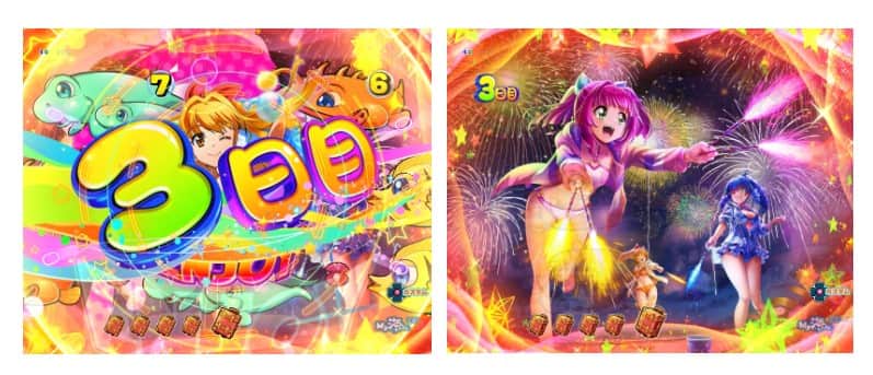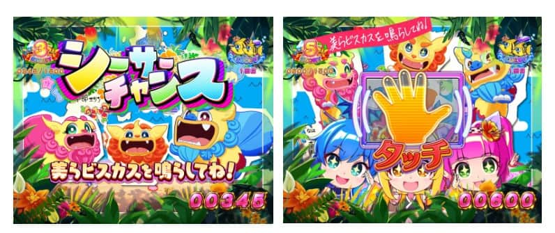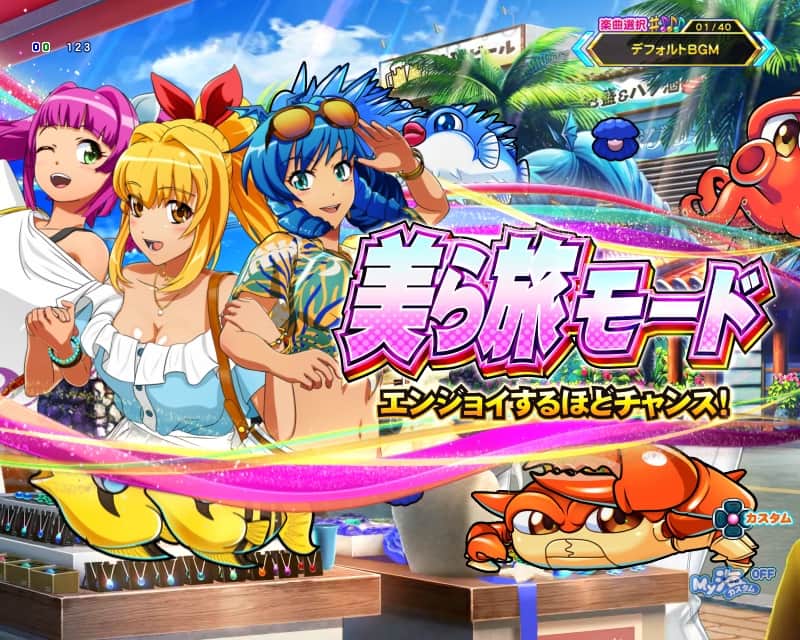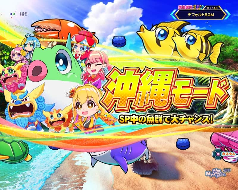3人娘が沖縄を舞台に楽しむ新モード。SPはアクティビティ系リーチがチャンス。また、リーチ中はタッチアイコンが出れば魚群出現率が上昇。
