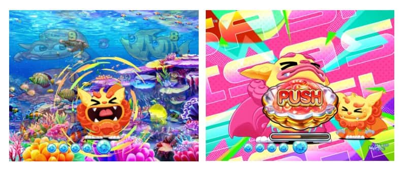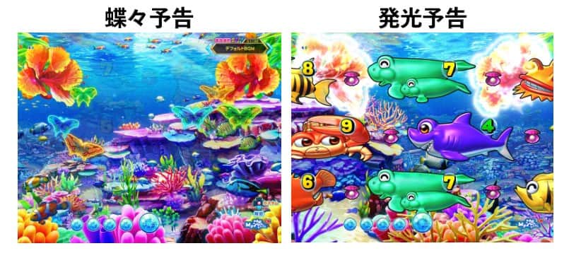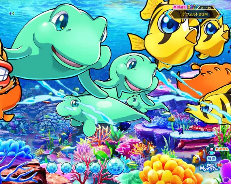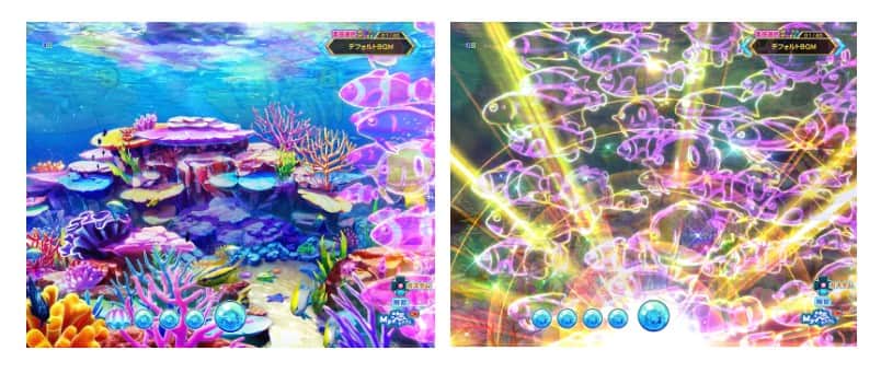 いつものシンプルな楽しさがある基本モード。演出中に違和感発生(変動音の遅れや泡や魚群が遅れて出現etc…)で大チャンス。