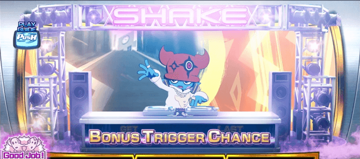 本機『SHAKE BONUS TRIGGER(シェイク ボーナストリガー)』に搭載されたBTはループ性が付与されたタイプで、初当りBB後に必ず発動。