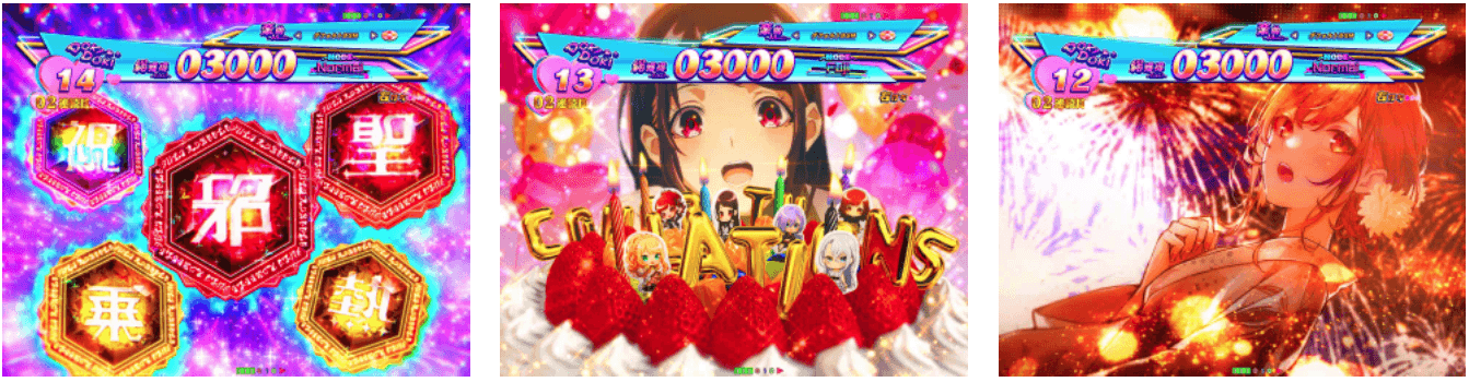 | 払い出し出玉 | 約4050~4500個 (※3) 約3000~3750個 (※3) 約2250~2850個 (※3) 約1650~1800個 (※3) 約1500個+α (※2) 約1050個 (※3) 約450個 (※3) 約300個 |