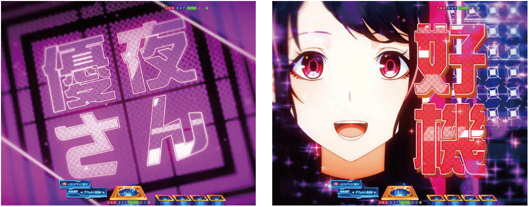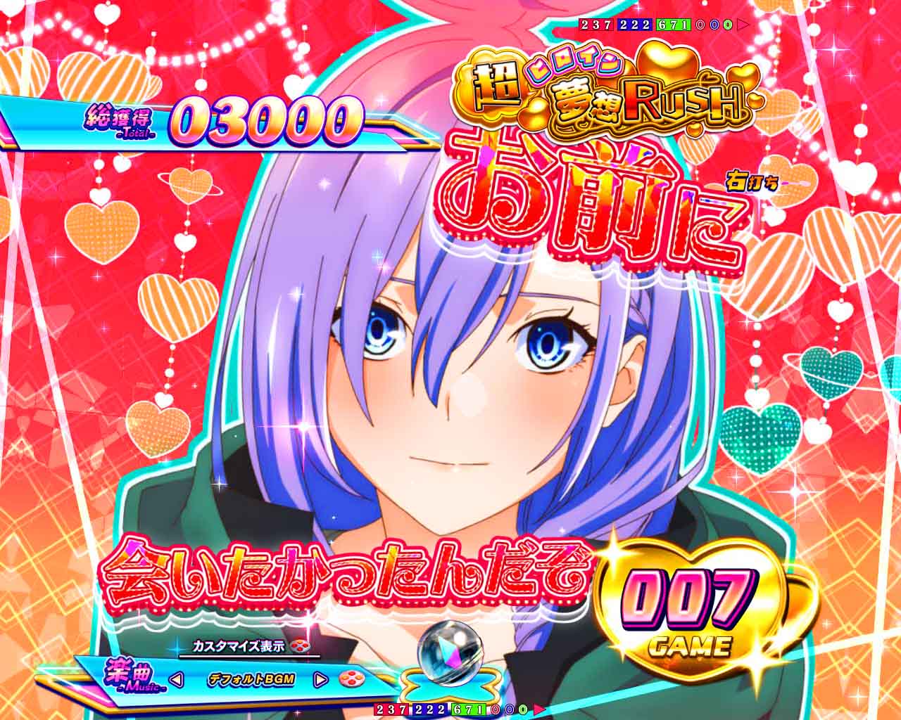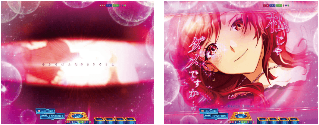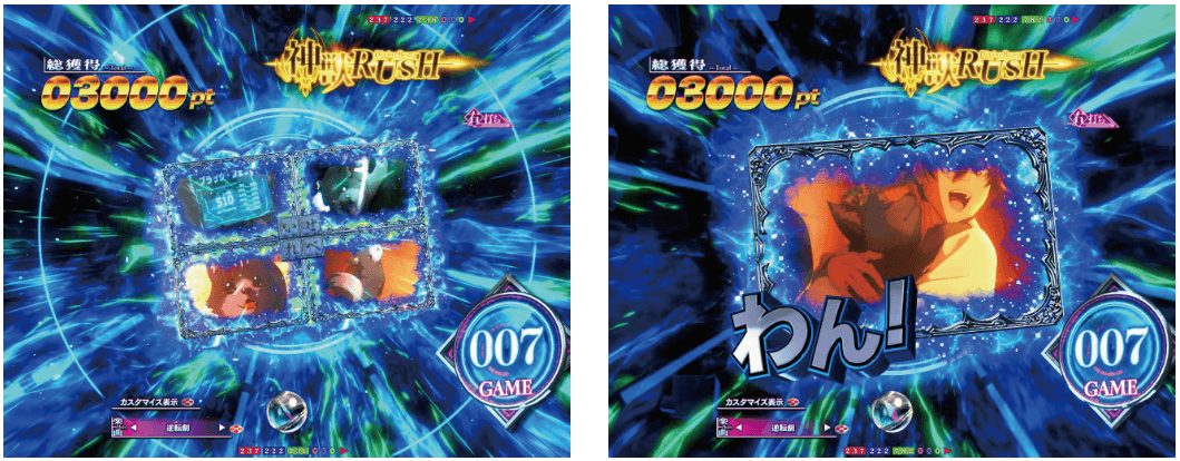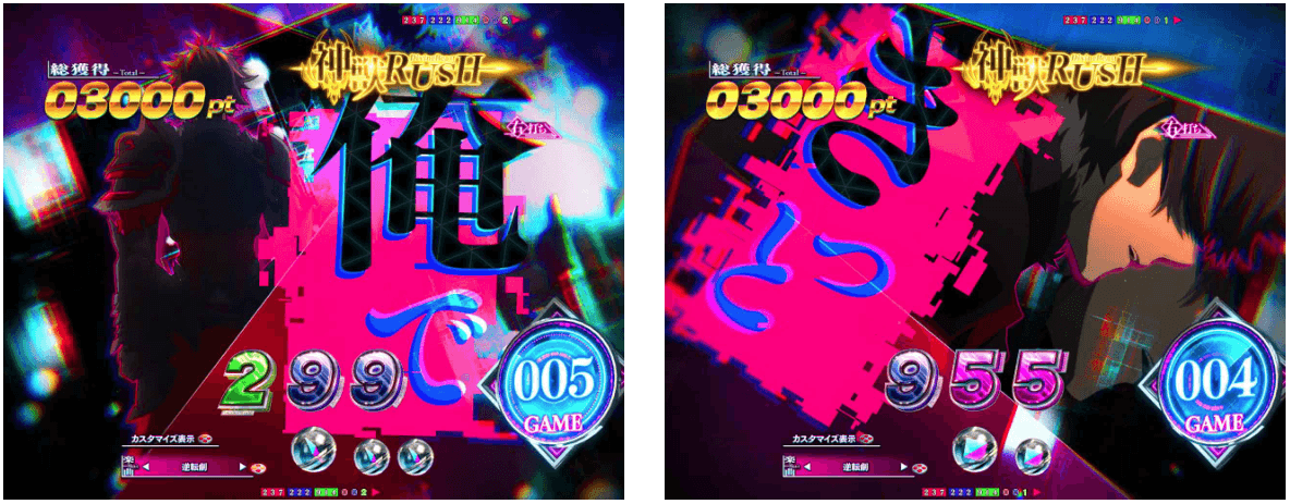 RUSHは70回転のSTタイプで、ボーナス当選後に出玉を決定するタイプ。演出モードは「夢幻」と「ヒロイン夢想」の2種類から選択可能。