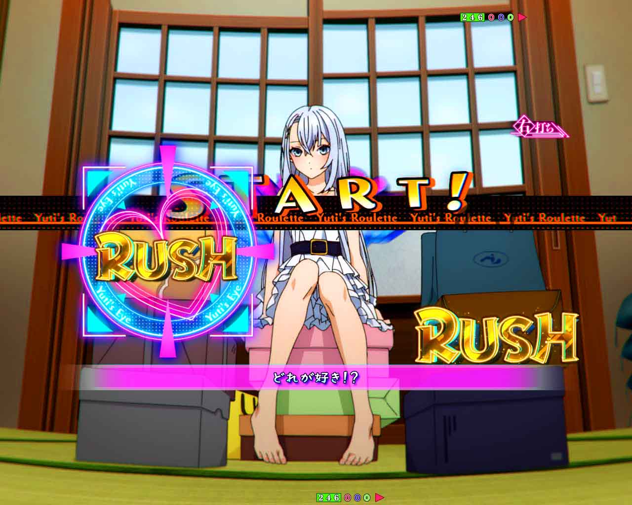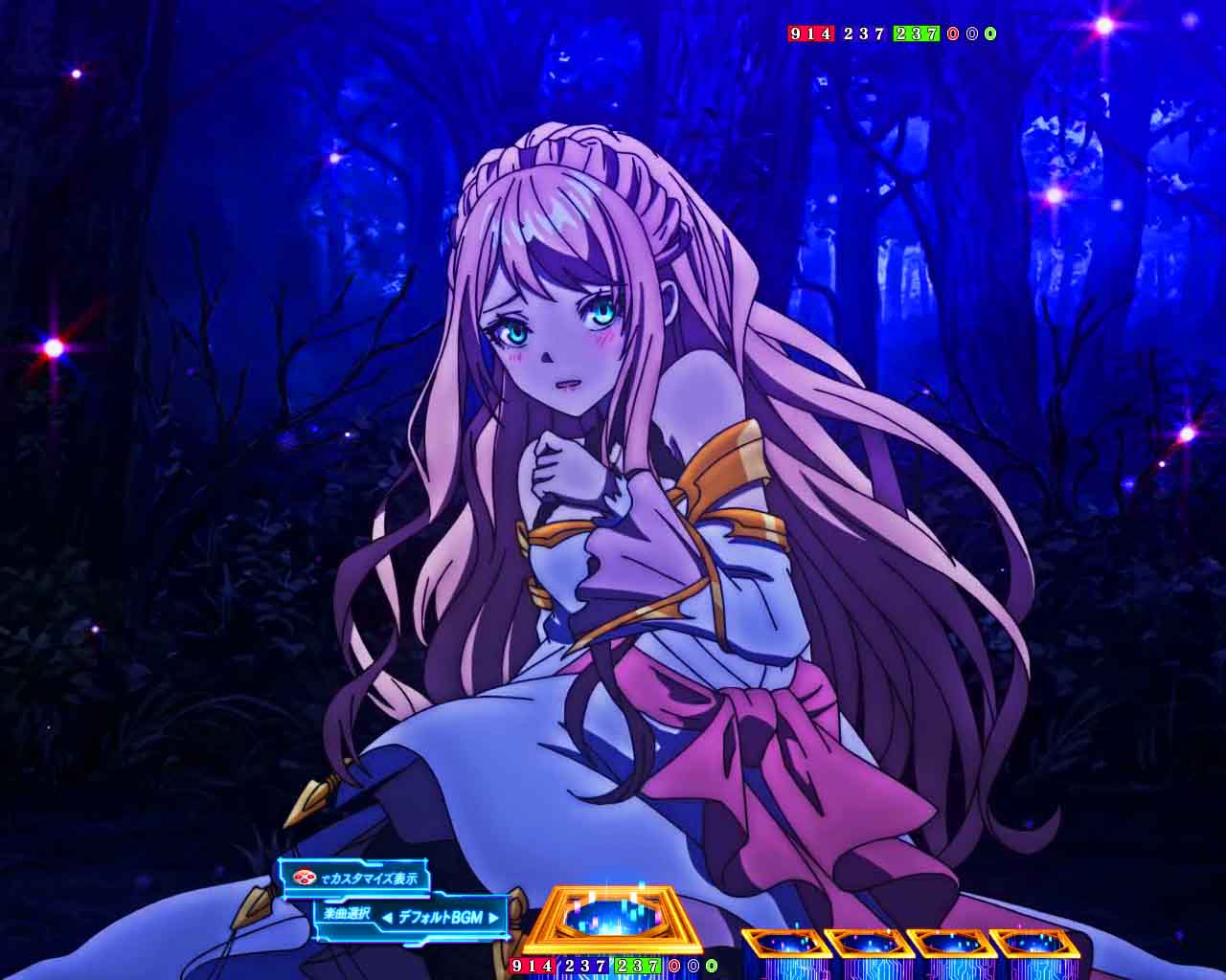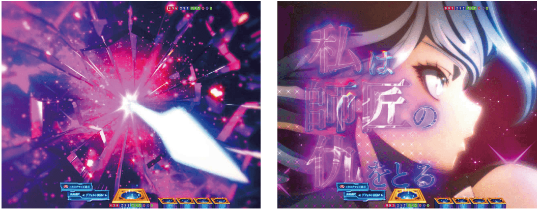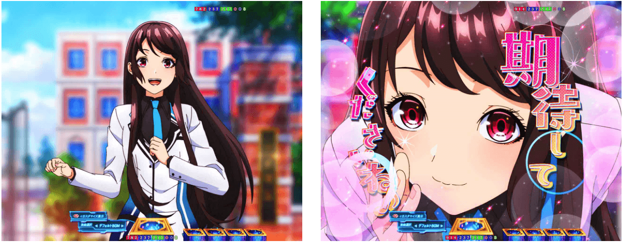 RUSHは70回転のSTタイプで、ボーナス当選後に出玉を決定するタイプ。演出モードは「夢幻」と「ヒロイン夢想」の2種類から選択可能。
