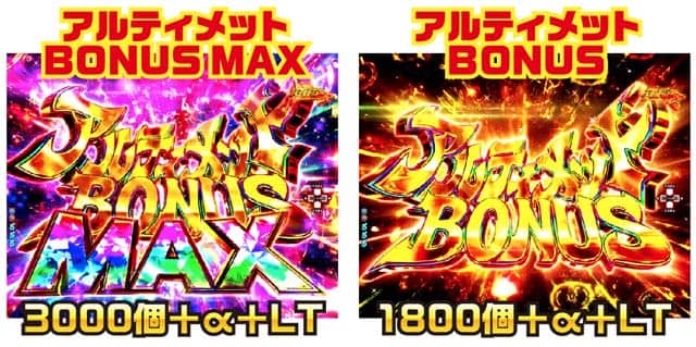 アルティメットBONUS MAXは全回転から発生する最上位BONUS。発生割合こそ激低だが、10R×2回+αを獲得した上でLTへ直行する。
