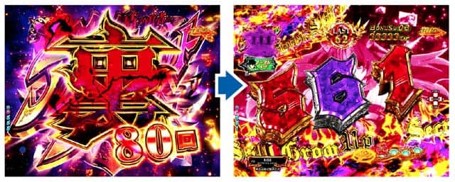 初当り全体の約98%を占めるメインBONUS。チャレンジ演出に成功すればRISING RUSHに突入する。