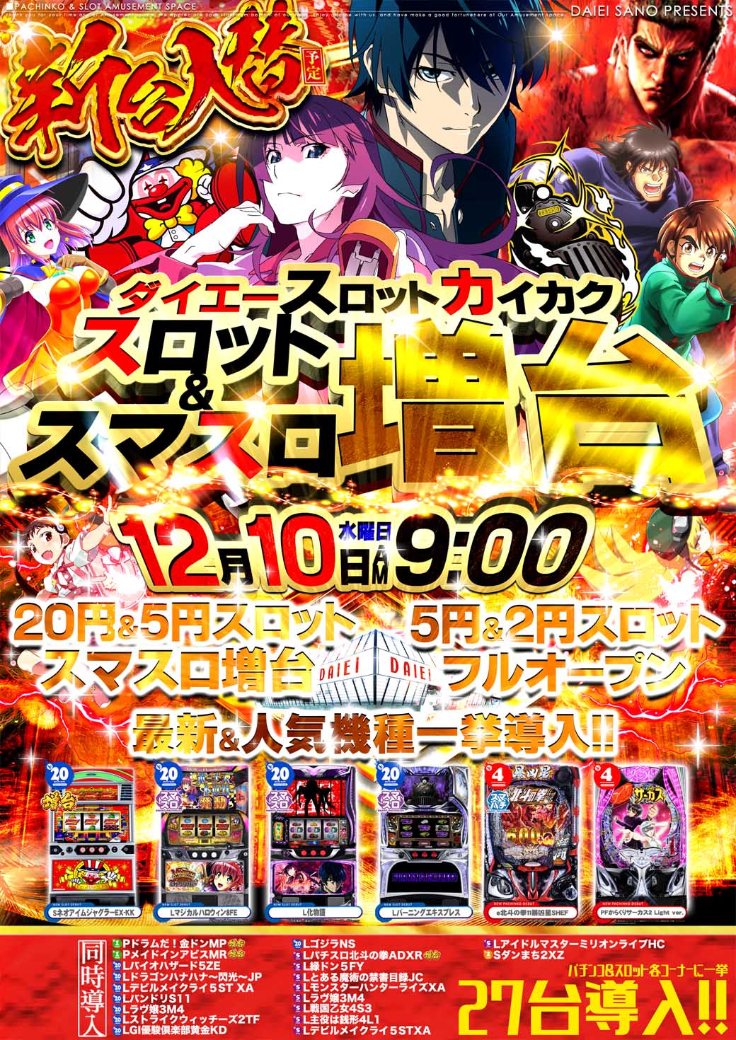 | 稼働台数 | パチンコ424台 / パチスロ264台 |