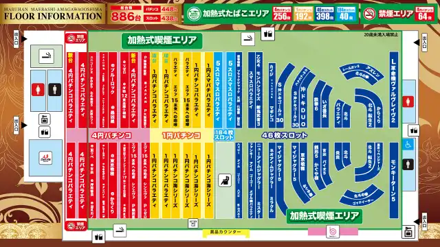 | 稼働台数 | パチンコ448台 / パチスロ438台 |