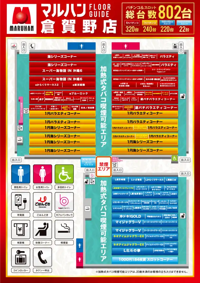 | 稼働台数 | パチンコ558台 / パチスロ242台 |