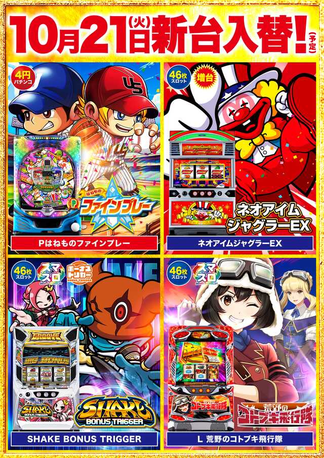 | 稼働台数 | パチンコ620台 / パチスロ373台 |