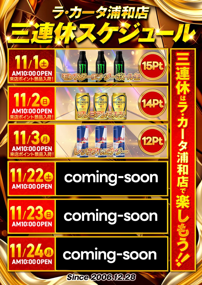 | 営業時間 | 10:00 ~ 22:50(定休日:年中無休(新台入替前日15時オープン予定)) |