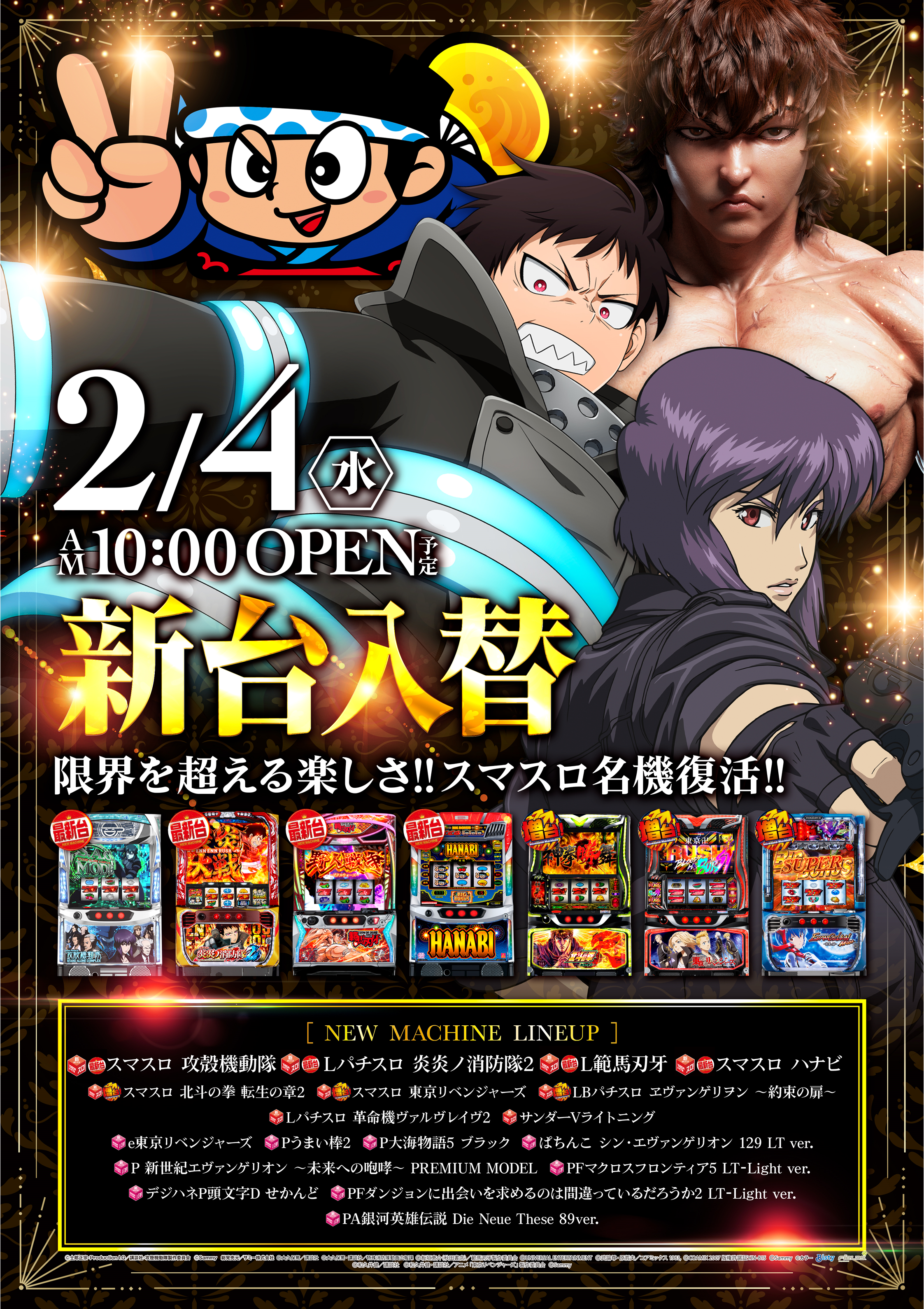 | 営業時間 | 10:00 ~ 23:00 遊技終了は22:45となります。 |