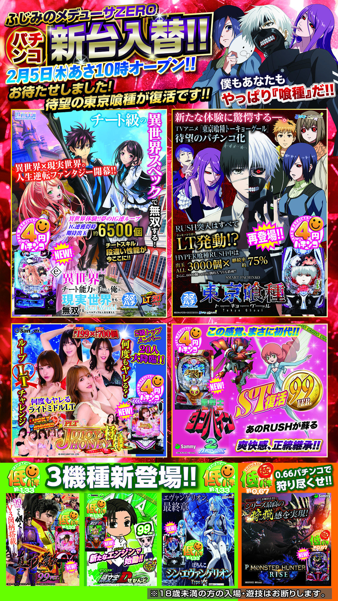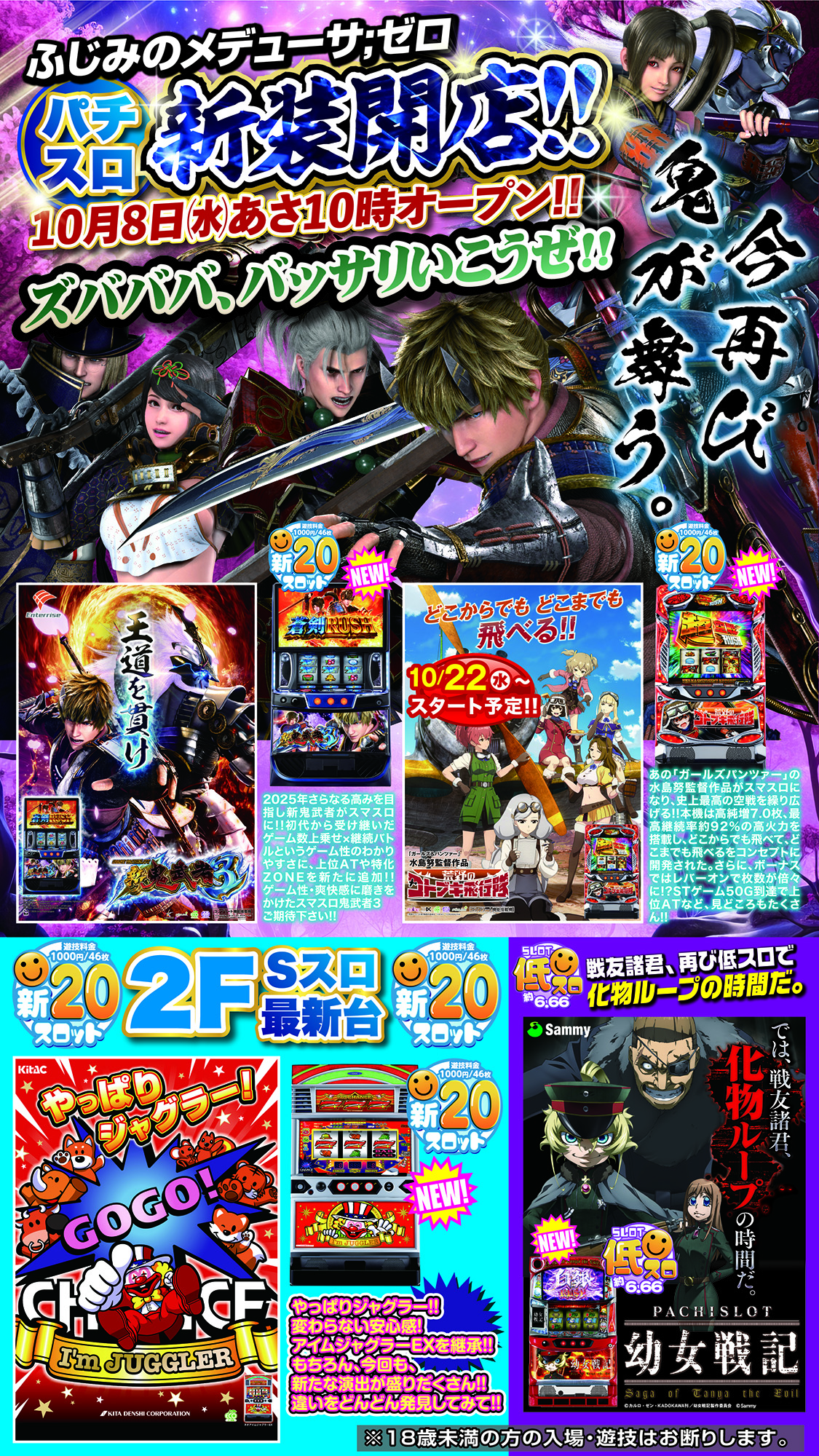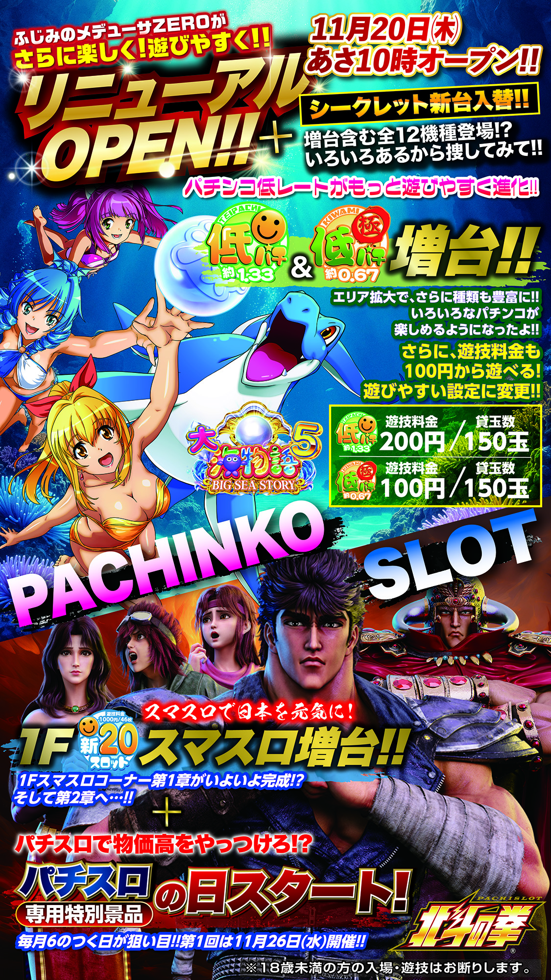 | 稼働台数 | パチンコ153台 / パチスロ106台 |