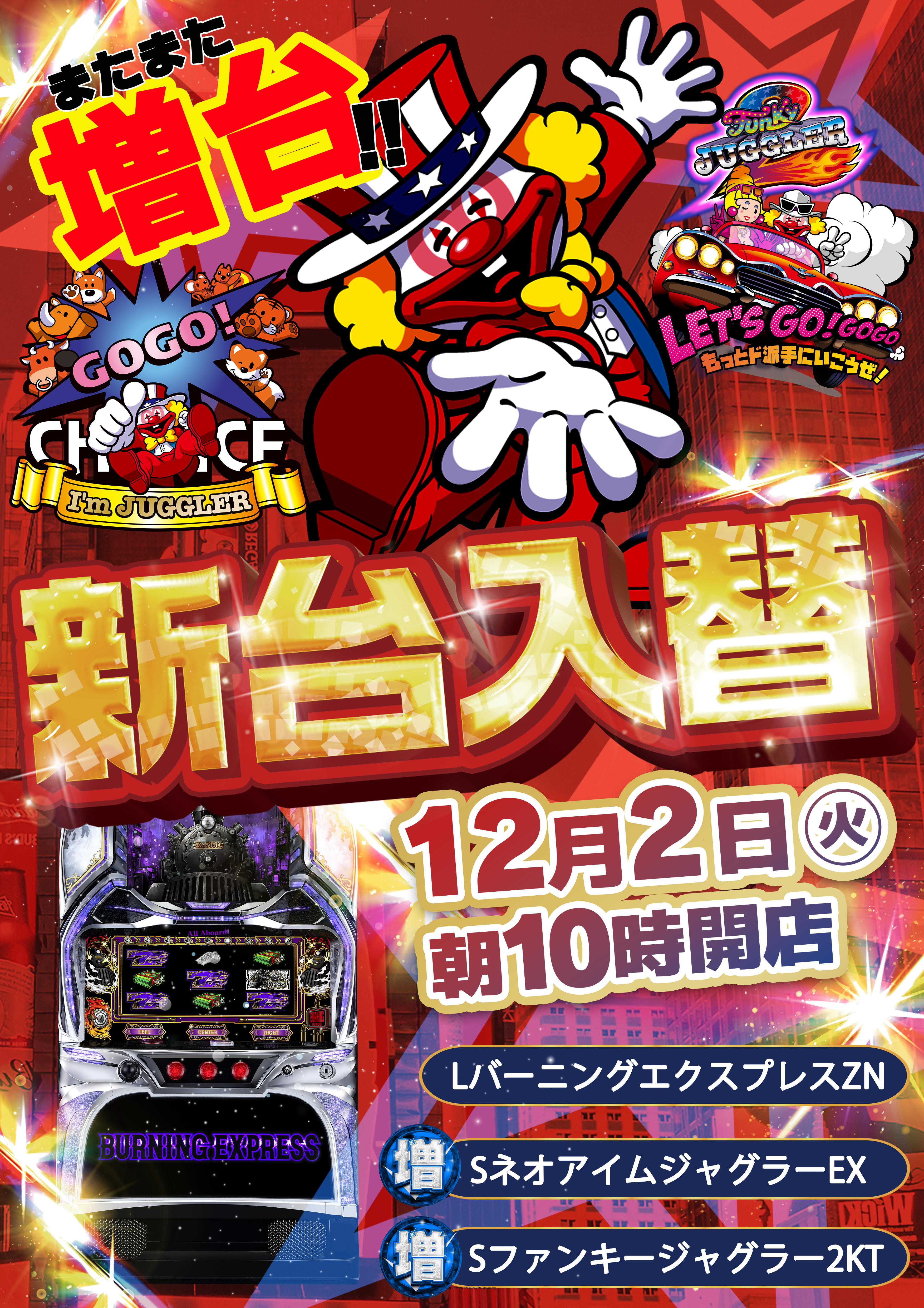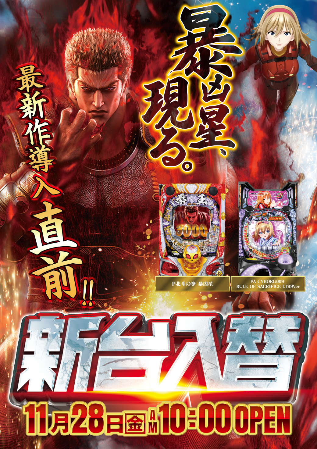 | 営業時間 | 10:00 ~ 23:00(定休日:年中無休) 遊技終了時間【22:45】 |
