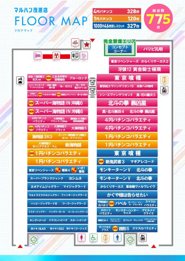稼働台数 | パチンコ448台 / パチスロ327台 |