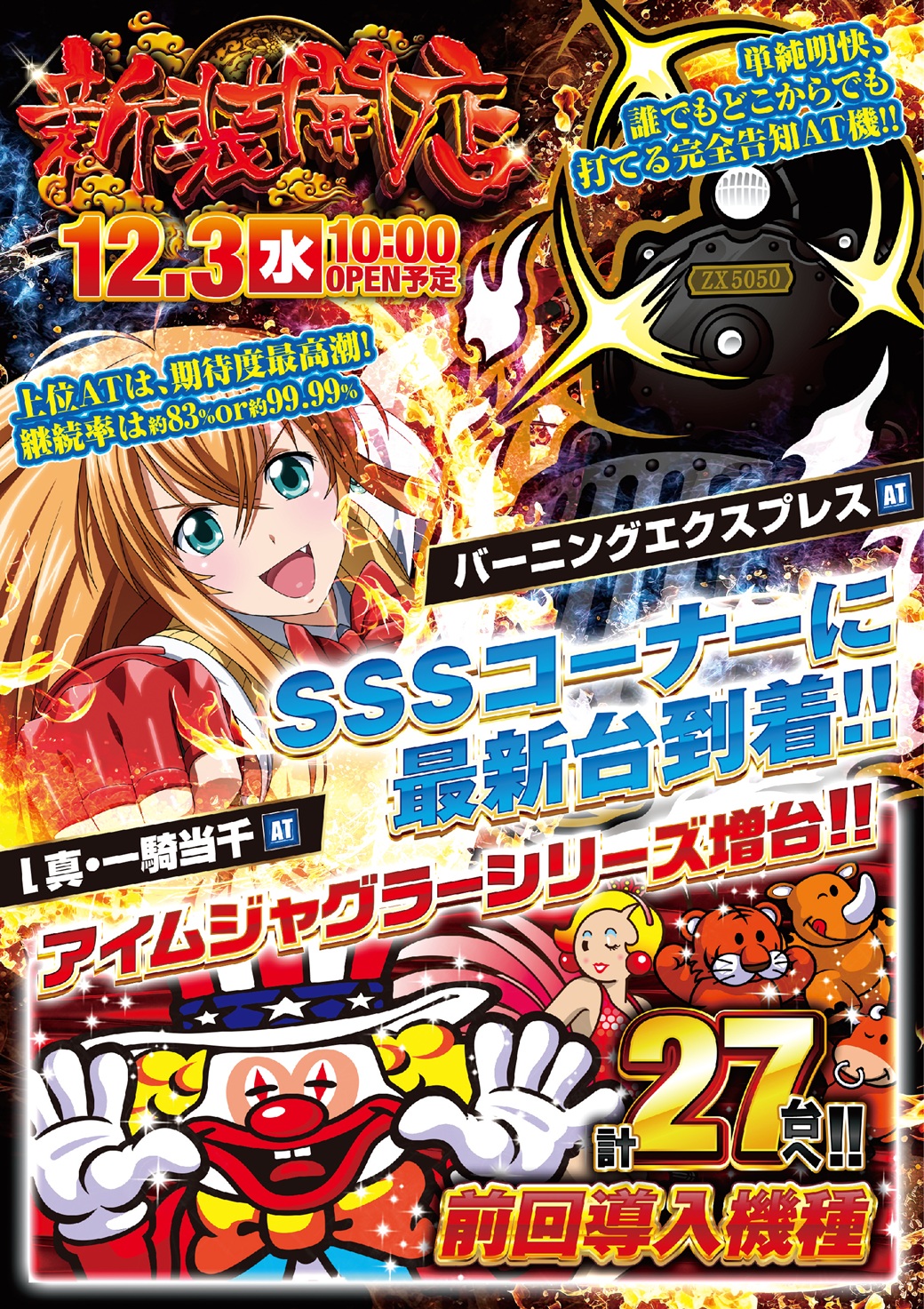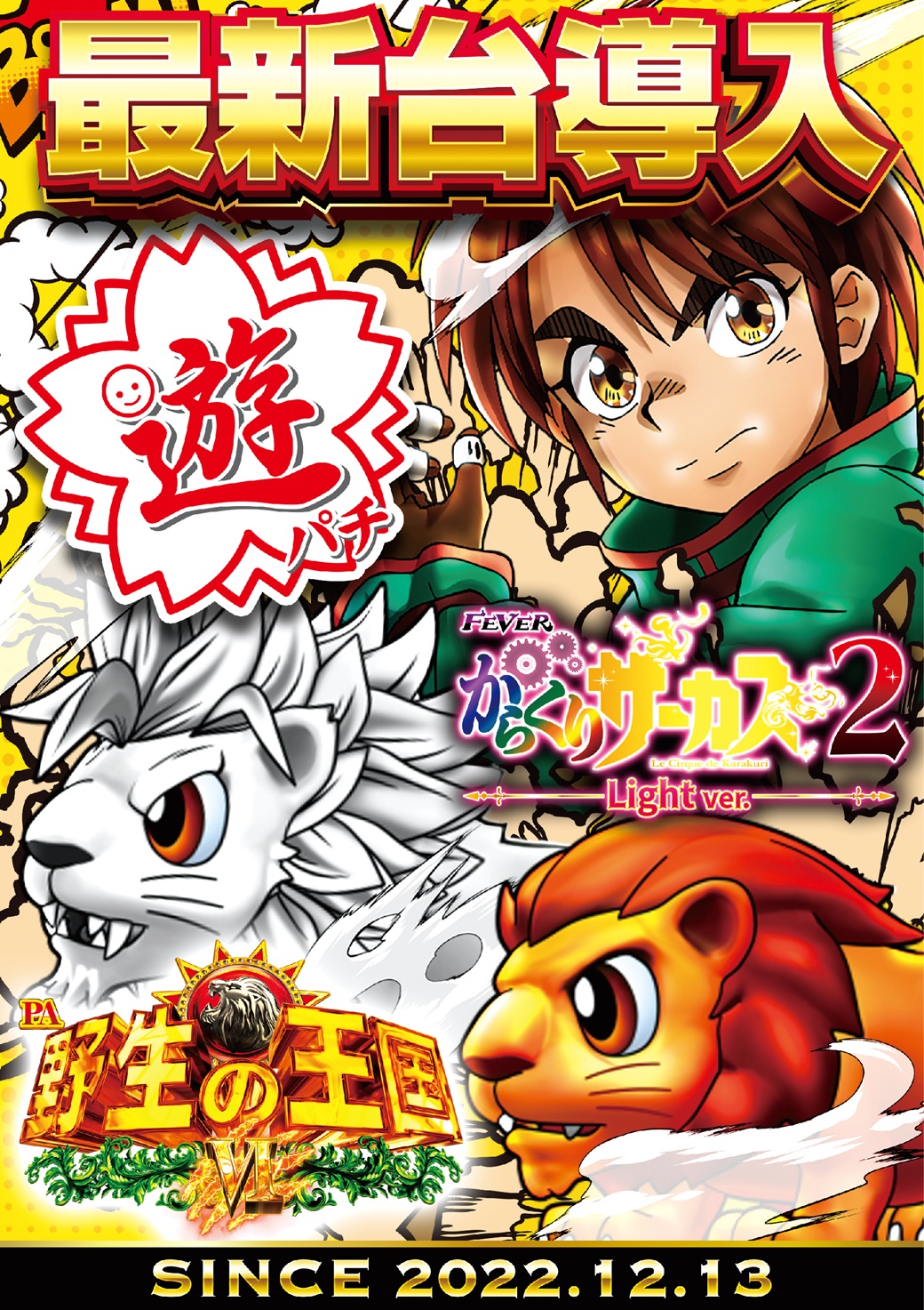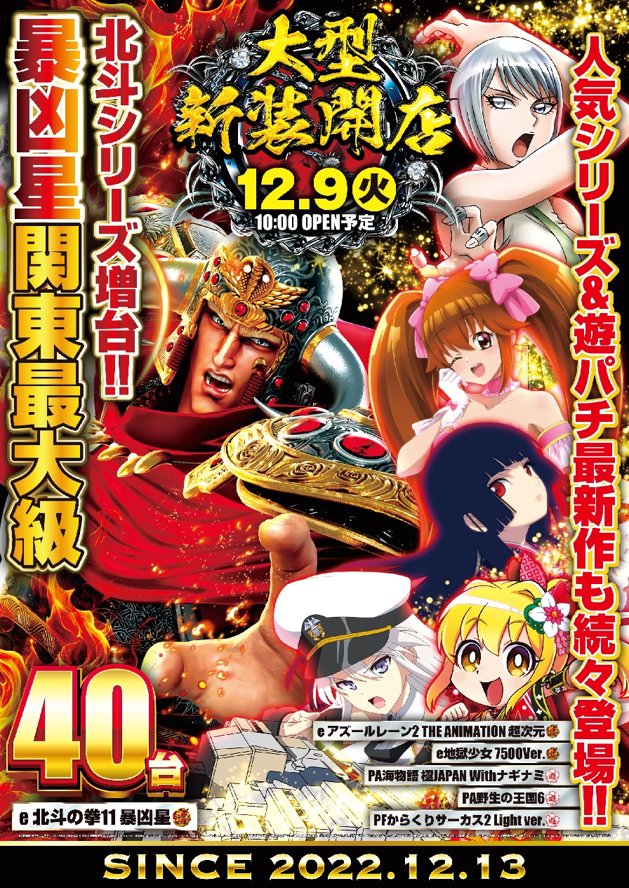 | 営業時間 | (定休日:年中無休) 平常営業日 10:00~23:00 (遊技終了時間 22:45) |