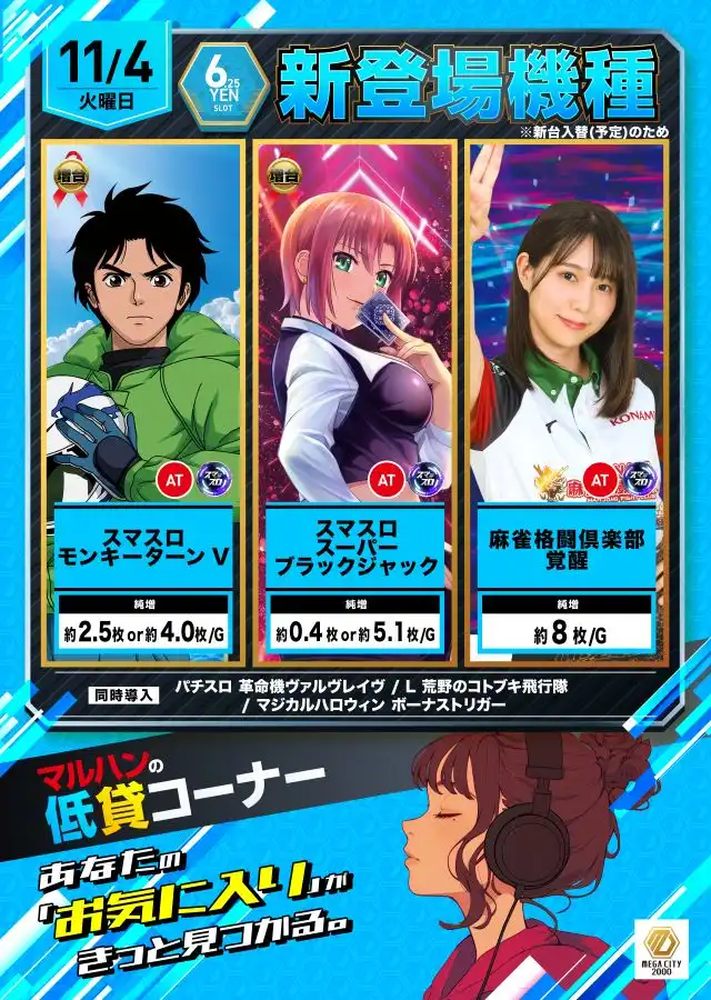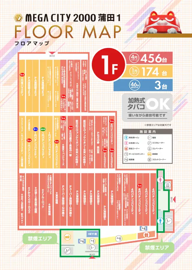 | 稼働台数 | パチンコ630台 / パチスロ418台 |