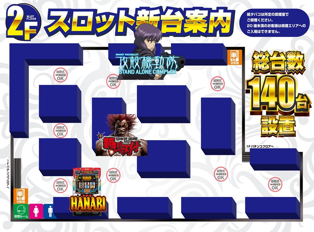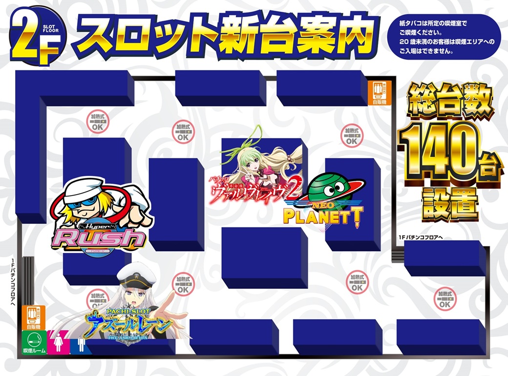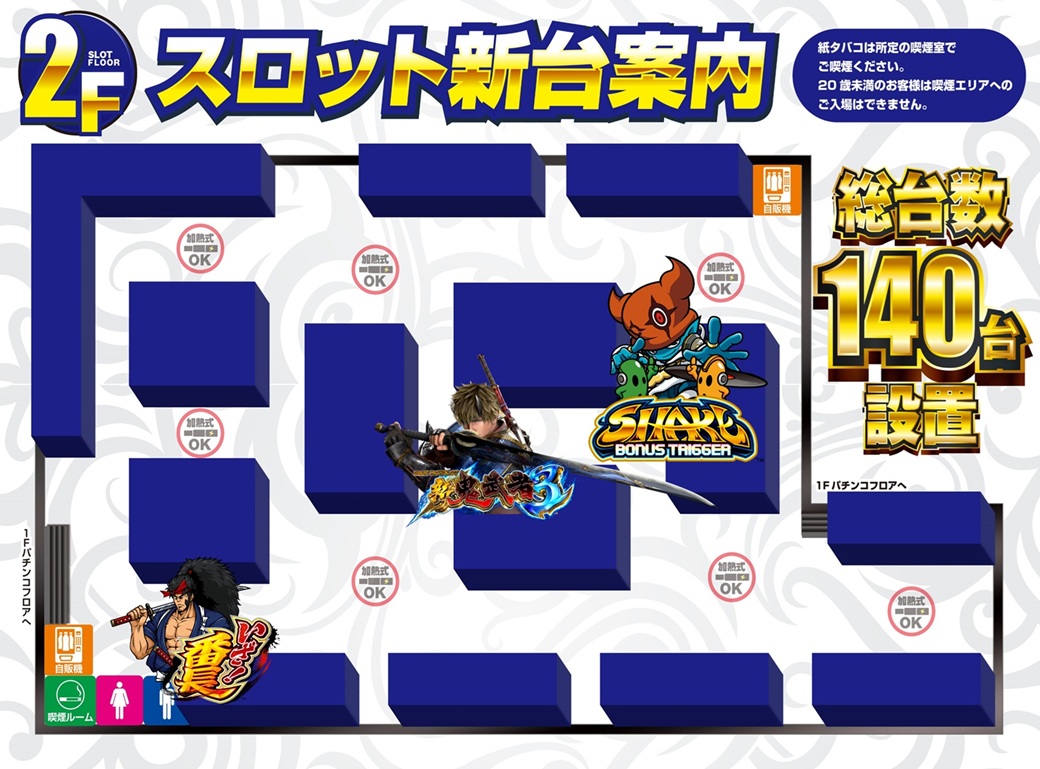 | 稼働台数 | パチンコ150台 / パチスロ140台 |