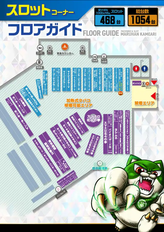 稼働台数 | パチンコ586台 / パチスロ466台 |