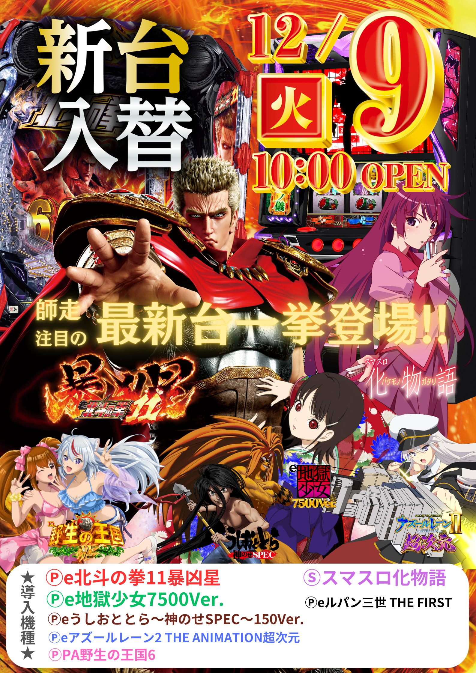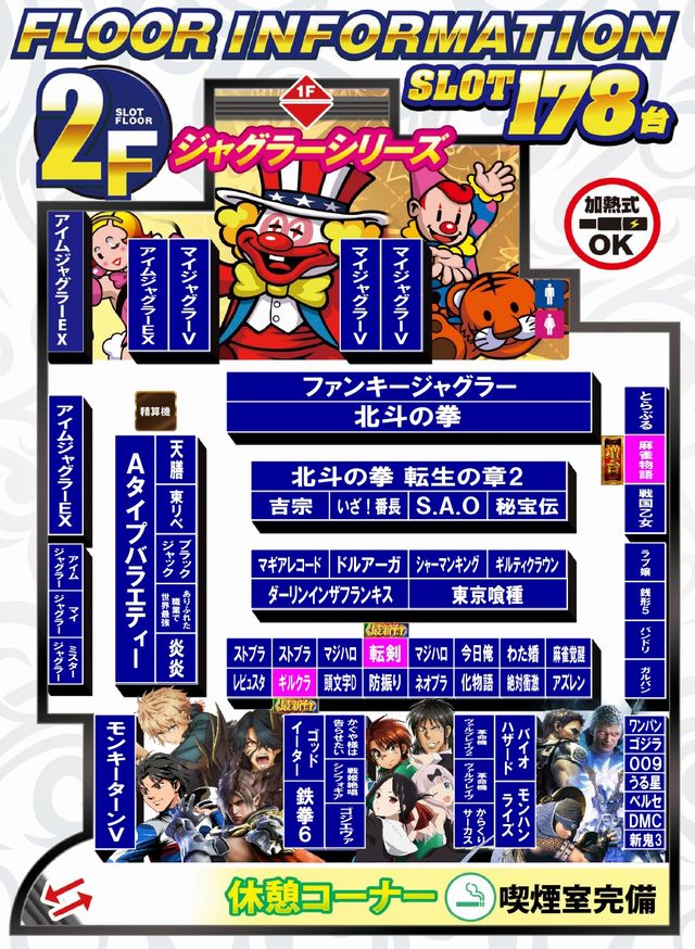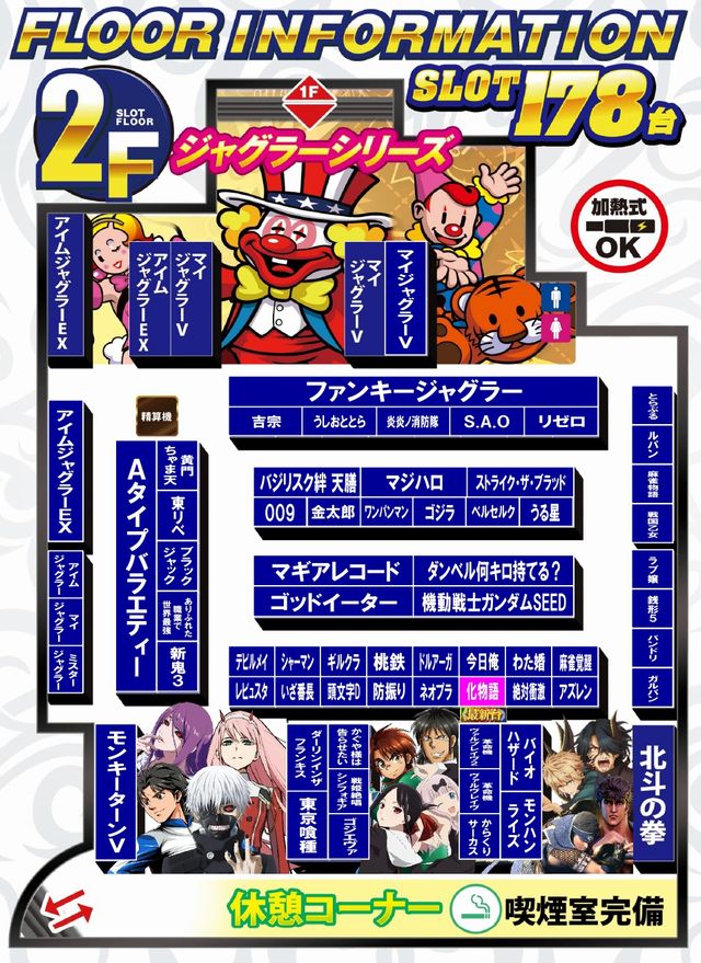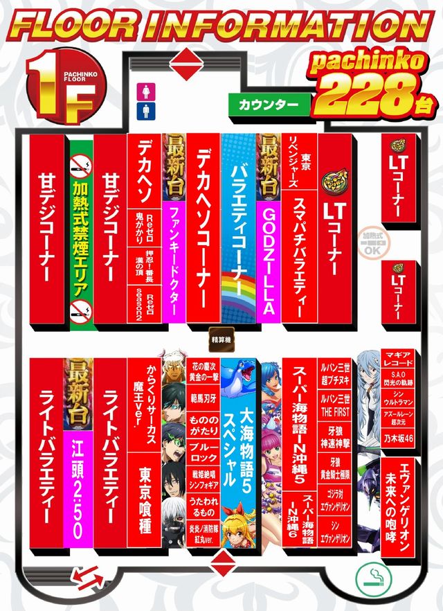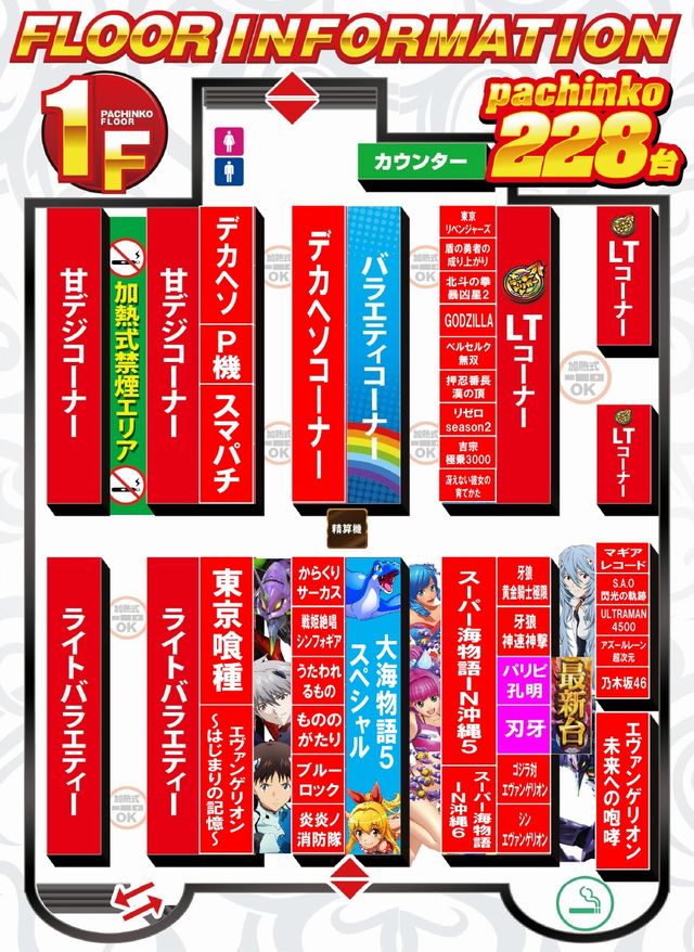 | 稼働台数 | パチンコ228台 / パチスロ178台 |