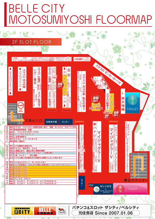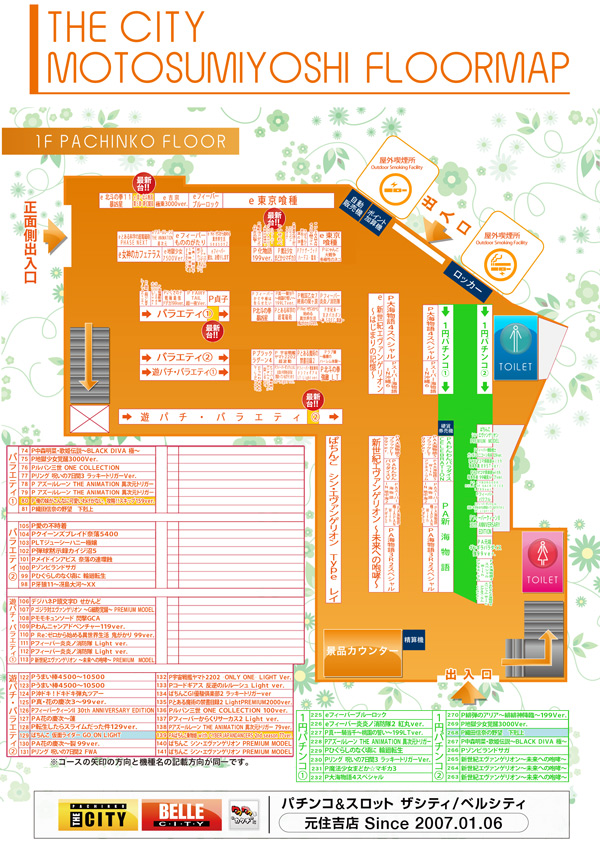 元住吉地域で最大設置台数!!1Fパチンコ262台・2Fスロット248台設置中です!!