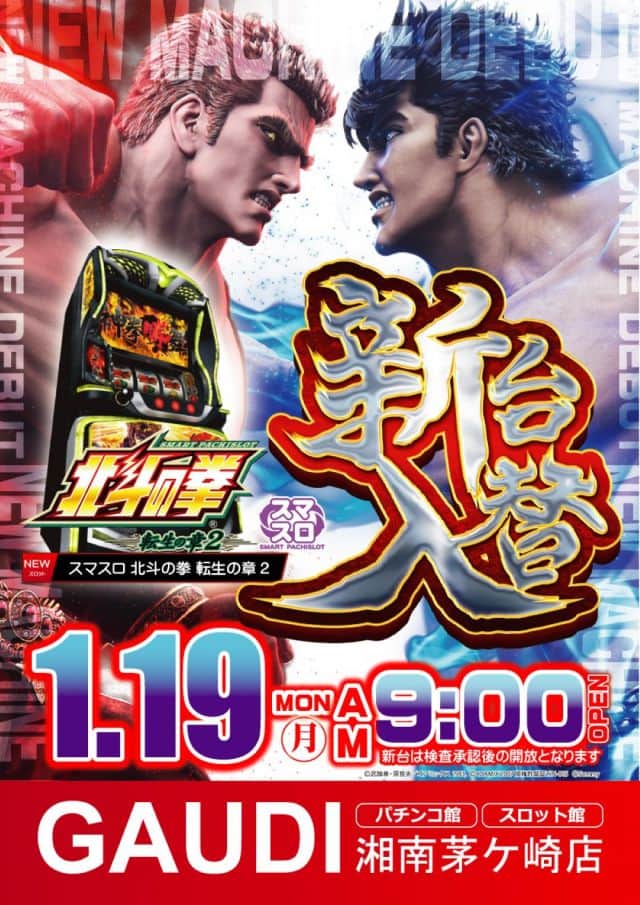 1月19日㈪スロット館新台入替 Lスマスロ北斗の拳転生の章2MW導入!!