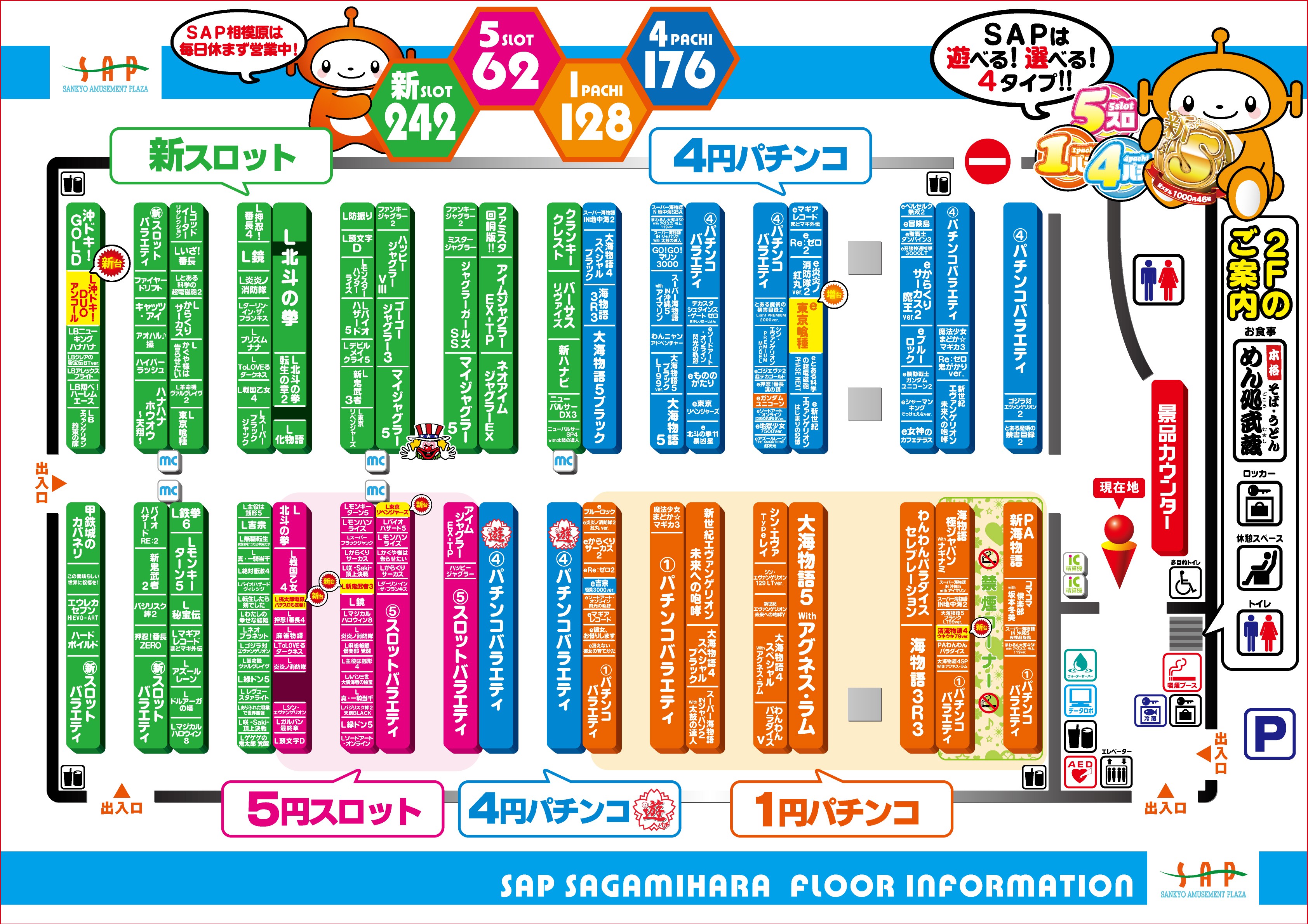 | 稼働台数 | パチンコ304台 / パチスロ304台 |