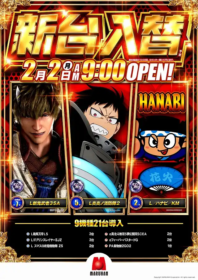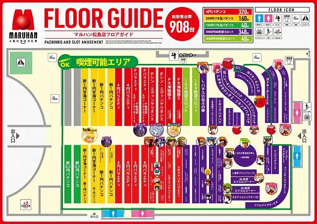 | 稼働台数 | パチンコ519台 / パチスロ388台 |