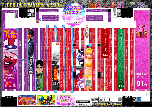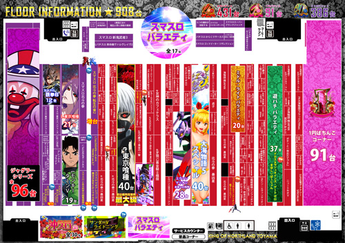 | 稼働台数 | パチンコ522台 / パチスロ386台 |
