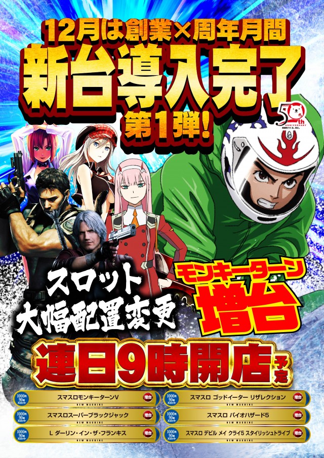 | 稼働台数 | パチンコ360台 / パチスロ120台 |