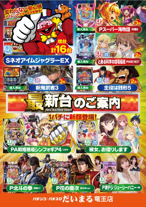 | 営業時間 | 10:00 ~ 23:00 遊技終了は22:45となります。 |