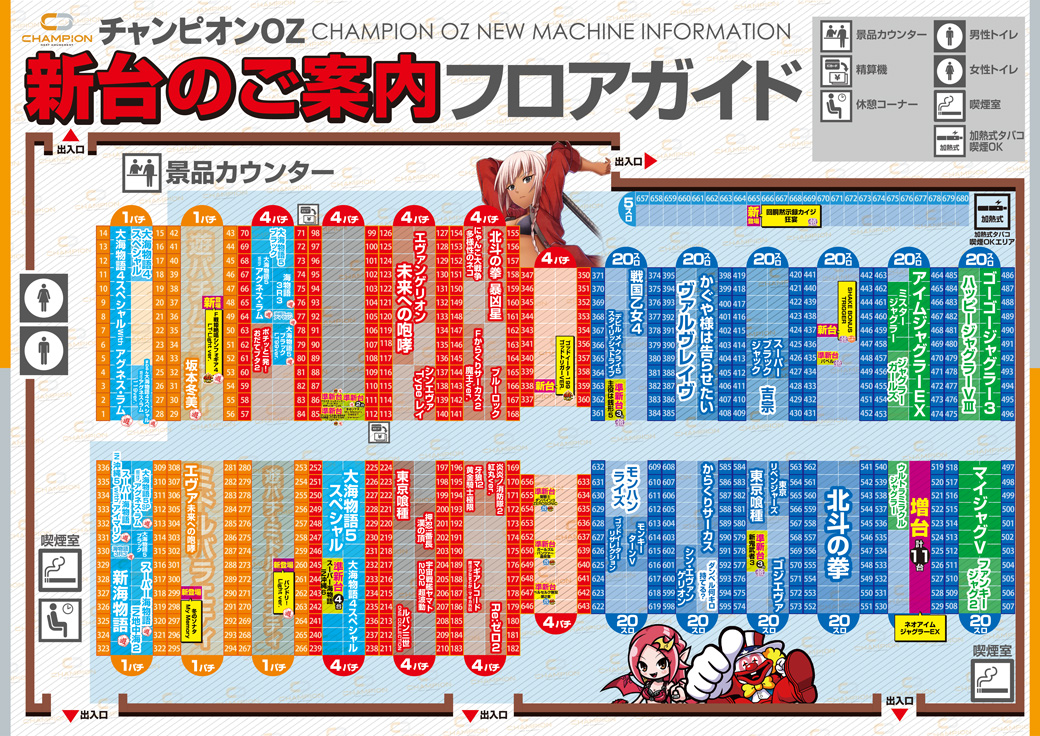 | 稼働台数 | パチンコ376台 / パチスロ288台 |