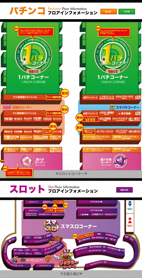 稼働台数 | パチンコ576台 / パチスロ316台 |